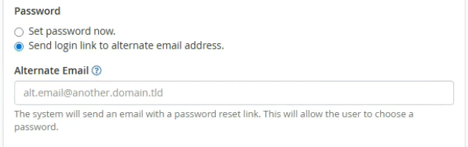 Ou fournissez une autre adresse e-mail (le système enverra un e-mail contenant un lien de configuration du mot de passe ainsi que des notifications et des e-mails de réinitialisation du mot de passe) :