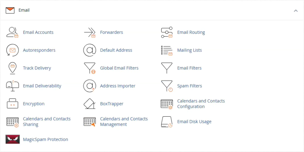 1.Connectez-vous à votre cPanel >> section Email>> menu Email accounts .